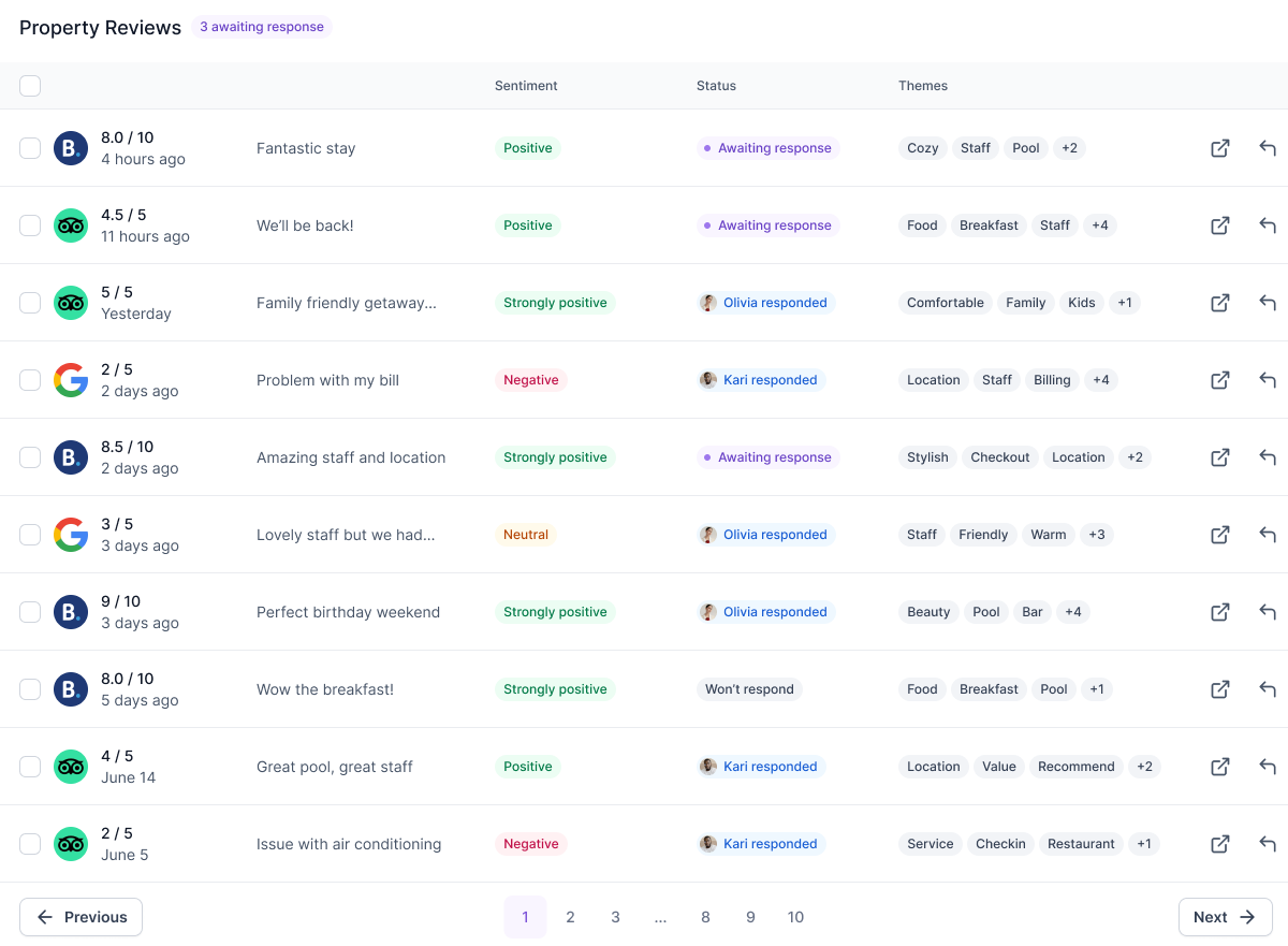 Collect, collaborate and repond to property reviews from all the platforms you care about.